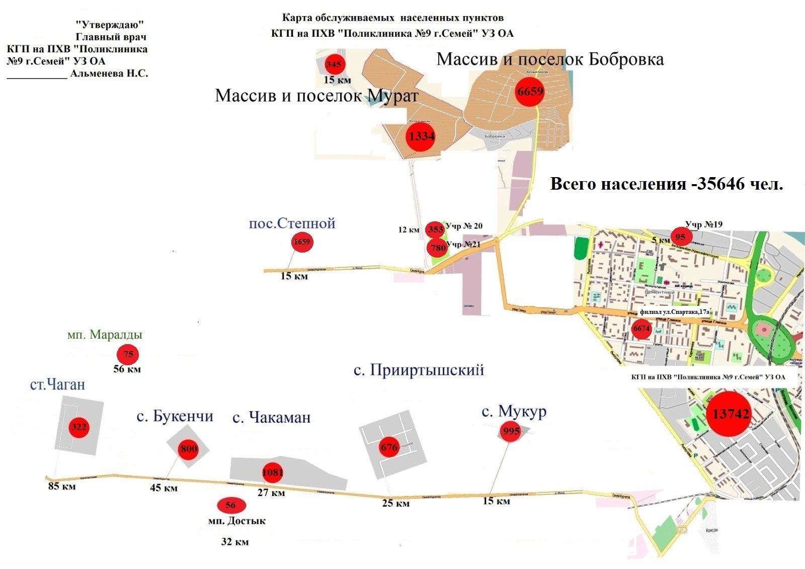 АО ДСБ «Семей қаласының №9 емханасы» ШЖҚ КМК қызмет көрсететін шалғай елді мекендер: